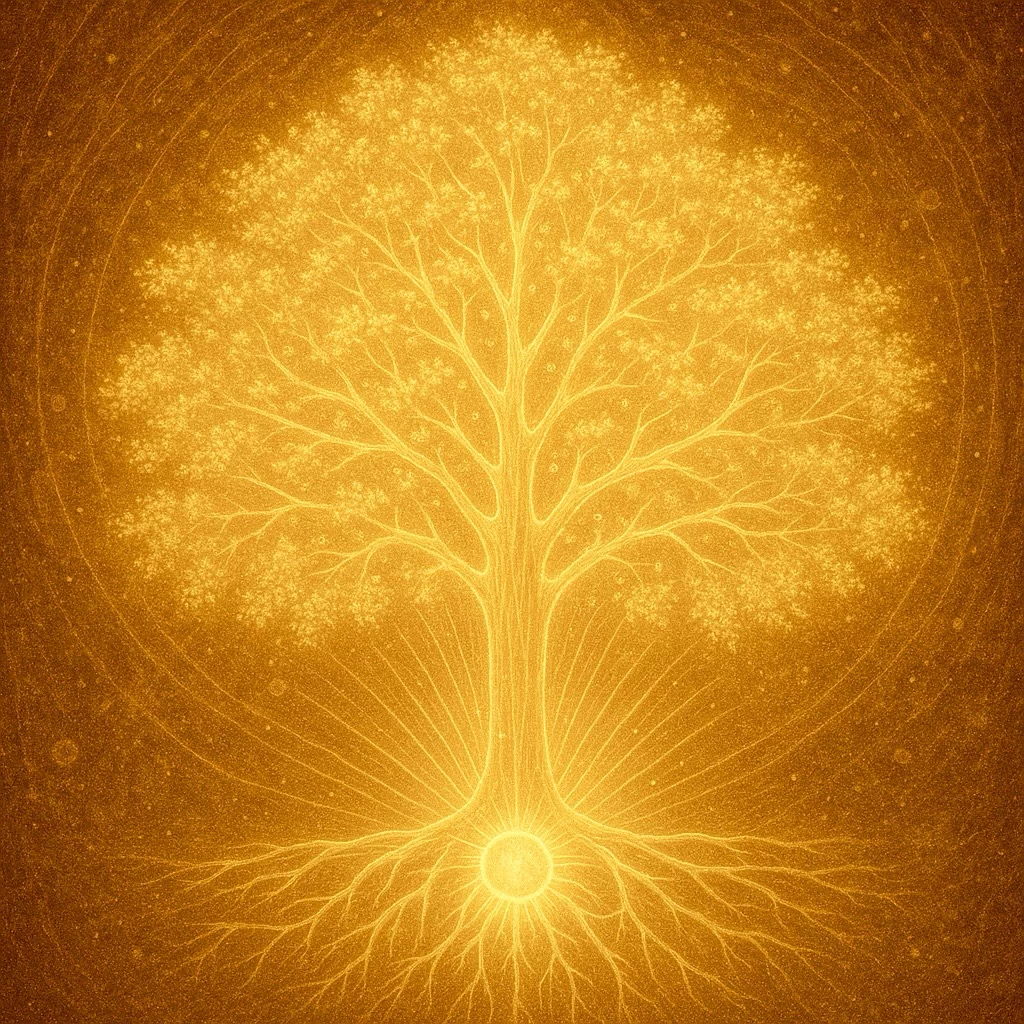 Focus of this image: “Presence Light of Joy through the Hearth Within “Tree”